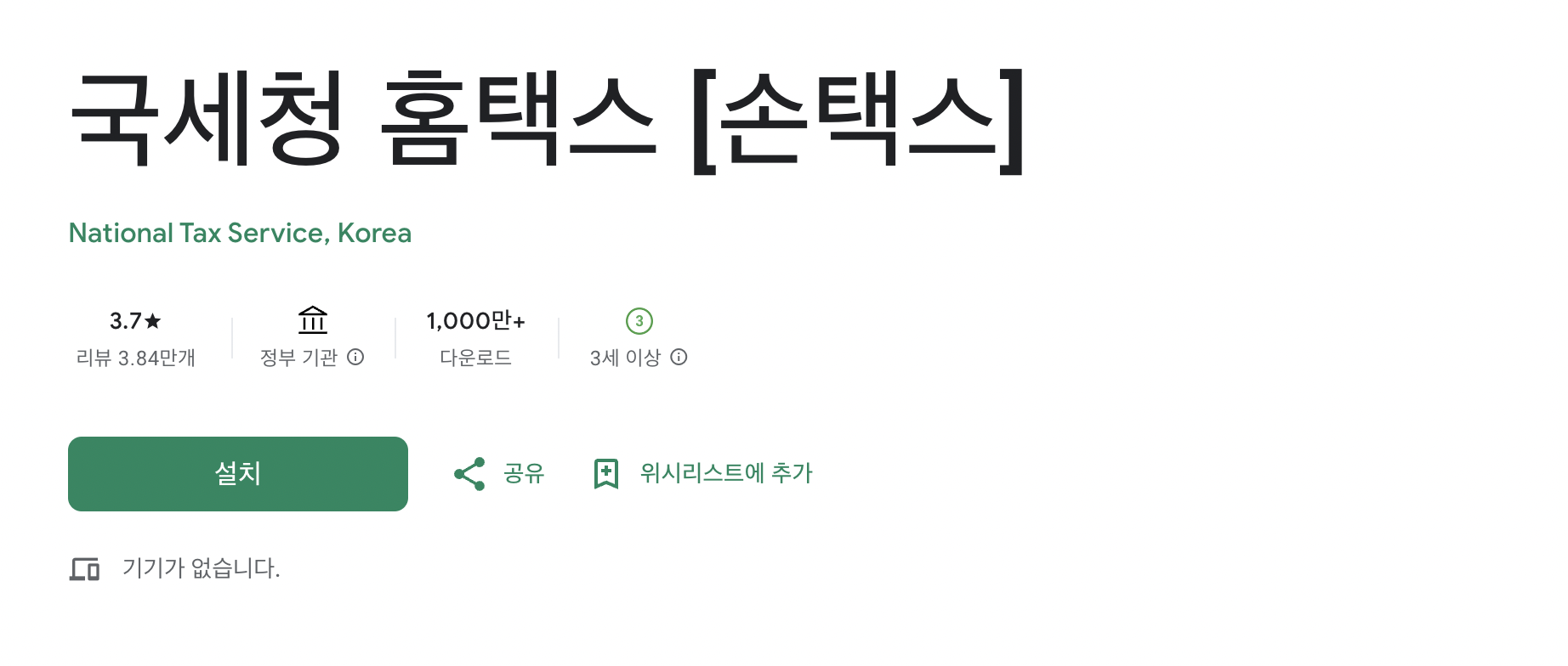 구글 플레이나 앱스토어에서 ‘손택스’를 검색하여 설치하시면 되고,