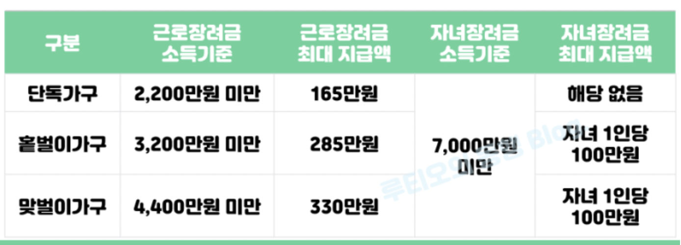 자녀장려금은 이 중 홑벌이 가구와 맞벌이 가구만 받을 수 있습니다.