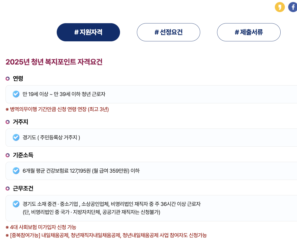 경기도 청년복지포인트 신청대상의 가장 기본적인 조건은
