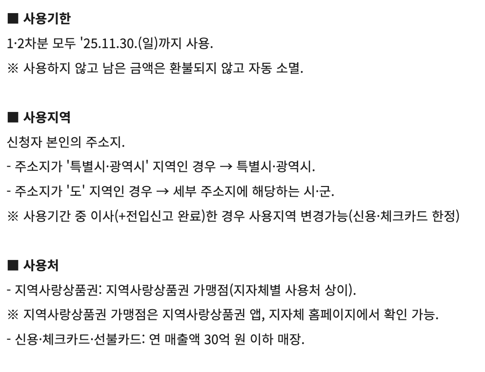 소비쿠폰은 개인의 주민등록상 주소지 시·군·구 또는 특별시·광역시 내에서만 사용 가능합니다.