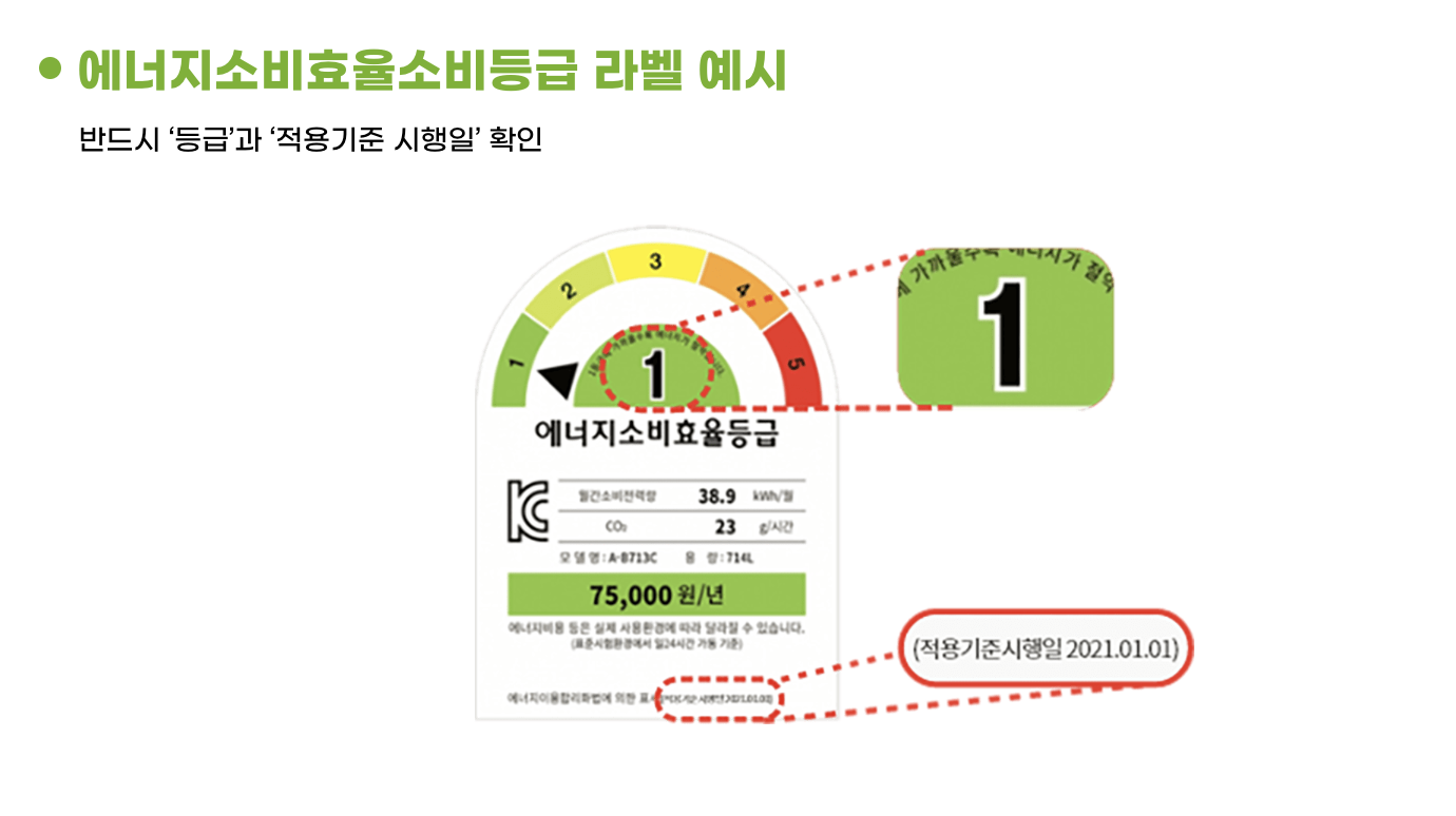에너지 효율 등급은 제품에 부착된 에너지 소비 효율 등급 라벨을 통해 쉽게 확인할 수 있습니다.